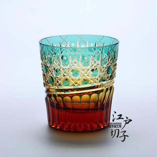 ロックグラス 八角籠目華やぎ【緑/琥珀】
